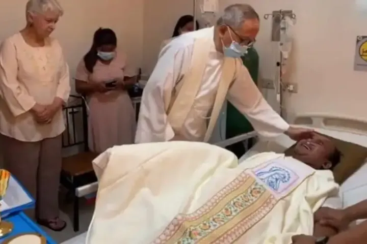 Khamsan Mim Khountichak, do Laos, foi ordenado sacerdote em uma cama de hospital depois de ser diagnosticado com câncer terminal há um mês.