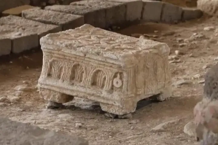A pedra encontrada nas escavações da sinagoga apresenta relevos que representariam o Segundo Templo de Jerusalém, que existiu por quase seis séculos e foi destruído por volta do ano 70 depois de Cristo.