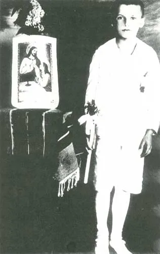Karol Wojtyla aos 7 anos, no dia de sua primeira comunhão. |