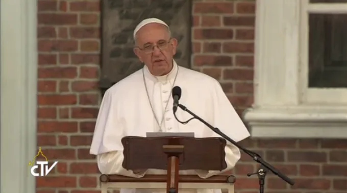Após algumas palavras do Arcebispo da Filadélfia, Dom Charles J. Chaput, que falou da atuação da Igreja no âmbito da liberdade religiosa e do auxílio aos migrantes, muitos deles vindos da América Latina, o Papa pronunciou um discurso desejando que todos, imigrantes ou cidadãos nascidos nos EUA, sintam-se renovados na gratidão pelas muitas bênçãos e liberdades de que gozam e possam defender estes direitos, especialmente o da liberdade religiosa ante as ameaças presentes.