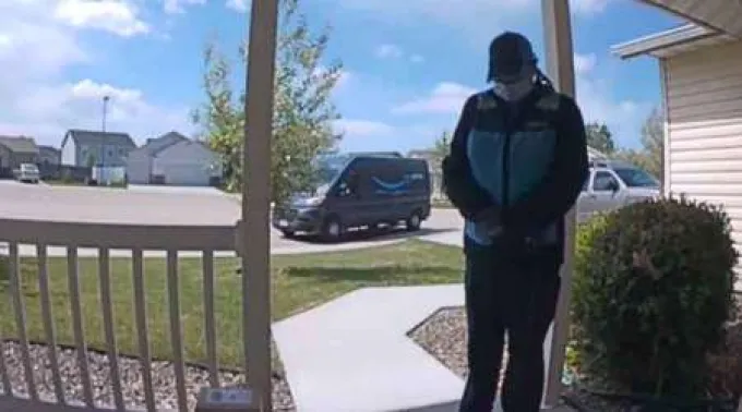 Uma mulher estava entregando um pedido da Amazon em Nampa, Idaho (Estados Unidos), quando viu um cartaz que tocou seu coração e decidiu pedir a Deus por um bebê doente. A cena foi gravada pela câmera de segurança da casa e viralizou.