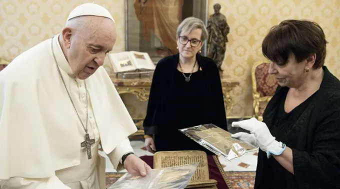 O Papa Francisco pôde apreciar no Vaticano um livro sagrado escrito em aramaico, resgatado da invasão do Estado Islâmico à cidade de Qaraqosh, no Iraque, e que foi restaurado recentemente na Itália.