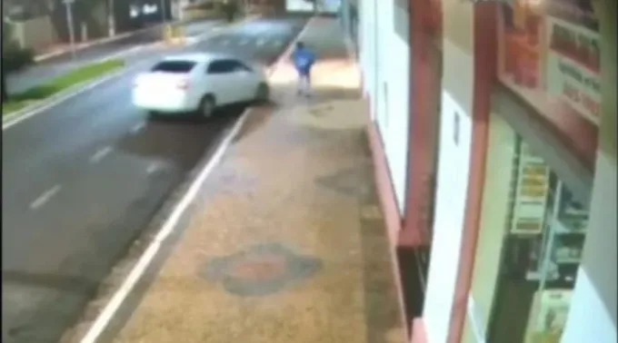 O caso aconteceu na noite de sábado (7), na avenida Tiradentes. Imagens de câmeras de segurança mostram o momento em que o homem passa correndo na calçada e o carro se aproxima, atinge o homem e o arremessa em um imóvel. Em seguida, o motorista dá ré no veículo e vai embora.
