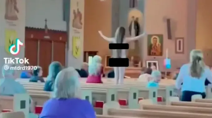 Uma mulher seminua invadiu a missa na igreja de Santa Verônica em Eastpointe, Michigan, que pertence à arquidiocese de Detroit, EUA, gritando lemas pró-aborto em pé em um banco, como mostra um vídeo compartilhado nas redes sociais.