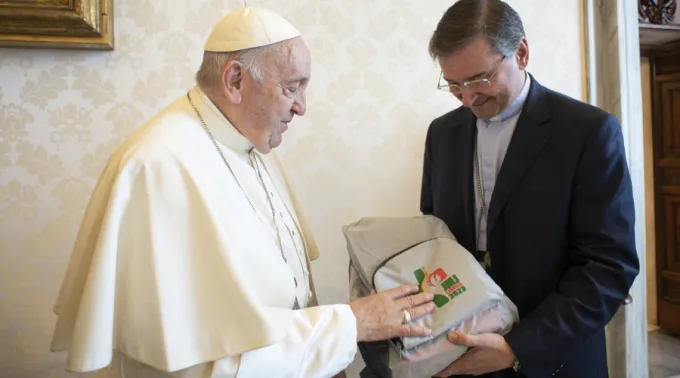 O papa Francisco recebeu hoje (22) o primeiro kit de peregrino da Jornada Mundial da Juventude (JMJ) Lisboa 2023. O kit foi entregue pelo presidente da Fundação JMJ Lisboa 2023, dom Américo Aguiar, durante audiência no Vaticano.