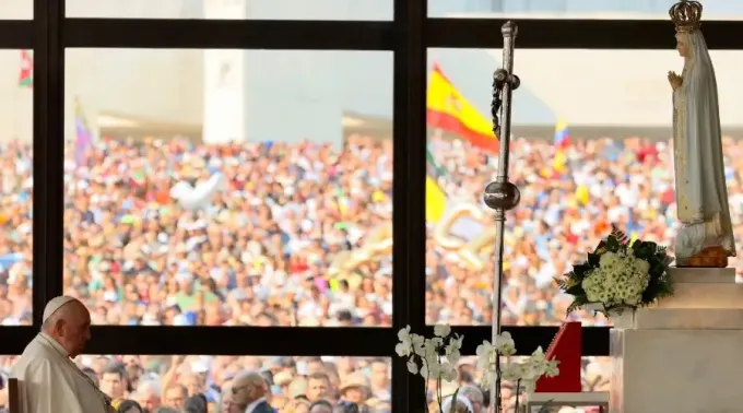 “Há tantas invocações de Maria, mas uma que também podemos dizer, pensando bem, é esta: a Virgem que vem correndo, sempre que há um problema, sempre que a invocamos, ela não se demora, vem, apressada", disse o papa Francisco em seu discurso na Capelinha das Aparições do Santuário de Nossa Senhora de Fátima.