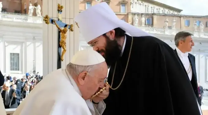 Não é a primeira vez que o representante ortodoxo se encontra com o papa Francisco depois de ser nomeado sucessor do metropolita Hilarion em junho de 2022.