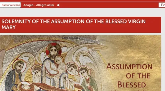 No site da Santa Sé, o departamento de comunicações da Santa Sé usou uma imagem de um mosaico de Rupnik da Dormição de Maria em artigo para a solenidade da Assunção de Maria na última quinta-feira (15).