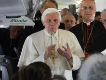 No avião papal, Bento XVI pede superar “esquizofrenia entre a moral individual e a moral pública”