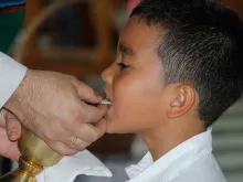 Menino chora de emoção ao receber a primeira Eucaristia