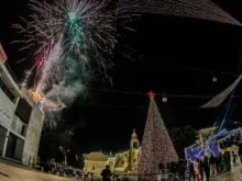 Árvore de Natal é acesa em Belém em meio a fogos de artifício