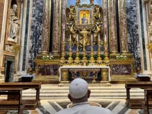Papa Francisco reza diante da Virgem em Santa Maria Maior.