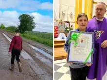 Menino caminha 11 quilômetros na lama para receber a crisma e recebe a bênção do papa