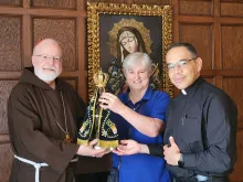 O reitor do santuário nacional, padre Carlos Eduardo Catalfo, com a imagem de Nossa Senhora Aparecida