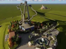 Simulação do parque temático com estátua gigante