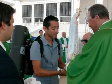 Velejador Ricardo Diniz recebe a imagem da Virgem de Fátima
