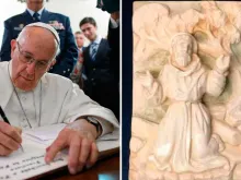 Papa presenteia bela imagem de São Francisco a base aérea portuguesa a caminho de Fátima