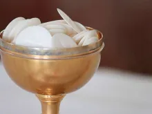 Hóstias encontradas intactas após enchente cobrir totalmente o sacrário de uma igreja