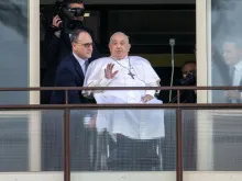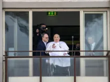Papa Francisco aparece em balcão do hospital pela primeira vez desde sua internação e dá bênção
