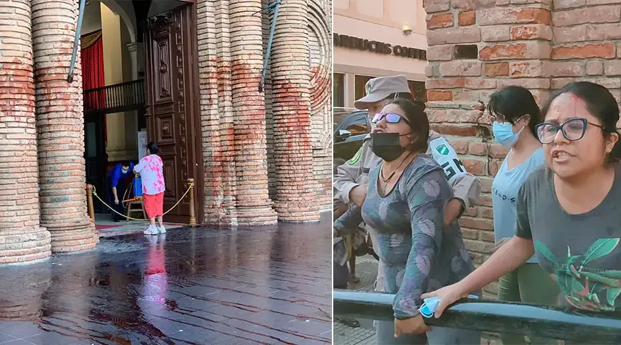 Feministas atacam catedral na Bolívia durante a missa dominical