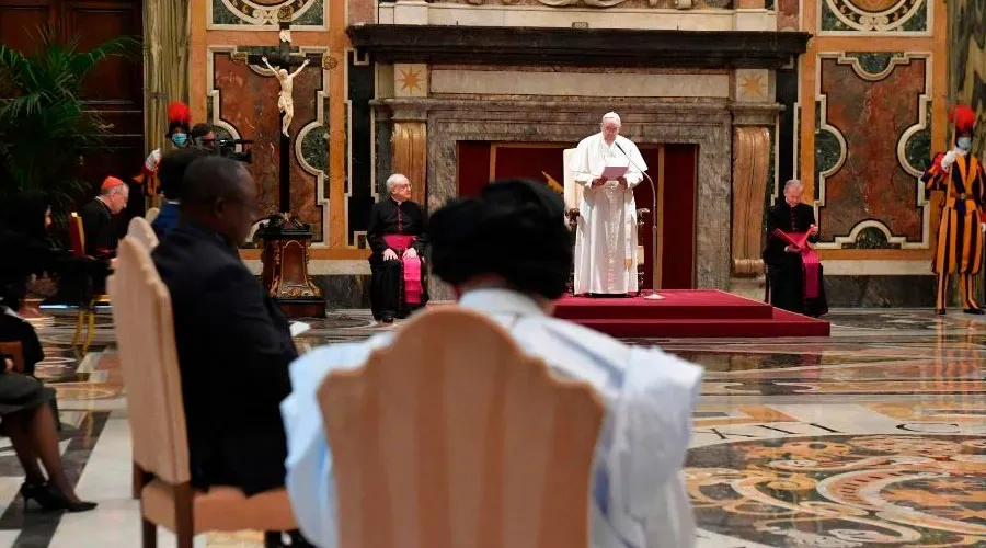 Papa Francisco na audiência com os novos embaixadores.