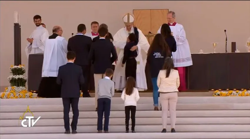 VÍDEO: Papa abraça o menino curado pela intercessão dos Santos Jacinta e Francisco Marto